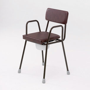 The 3521 stacking commode has a plastic coated, solid and durable steel frame with angled legs for a sturdy feel. This commode features an upholstered backrest and overseat - which is flame retardant - and an hygienic pot (removable) with lid. Maximum user weight of 133kgs/293lbs.